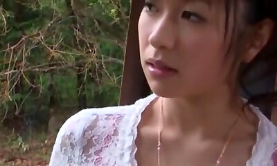 Tiny asian babe fingerfucked outdoors